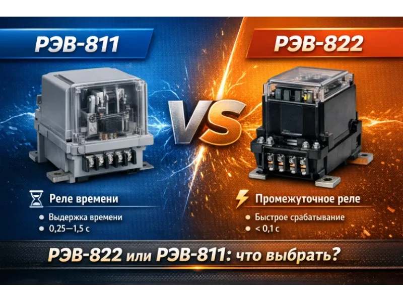 При выборе реле серии РЭВ легко ошибиться: обозначения похожи, обе модели относятся к одной линейке, обе работают в цепях постоянного тока. Но по факту РЭВ-811 и РЭВ-822 решают разные задачи. РЭВ-811 — это реле времени, а РЭВ-822 — промежуточное реле. То есть это не взаимозаменяемые устройства, а аппараты для разных схем и разных режимов работы.